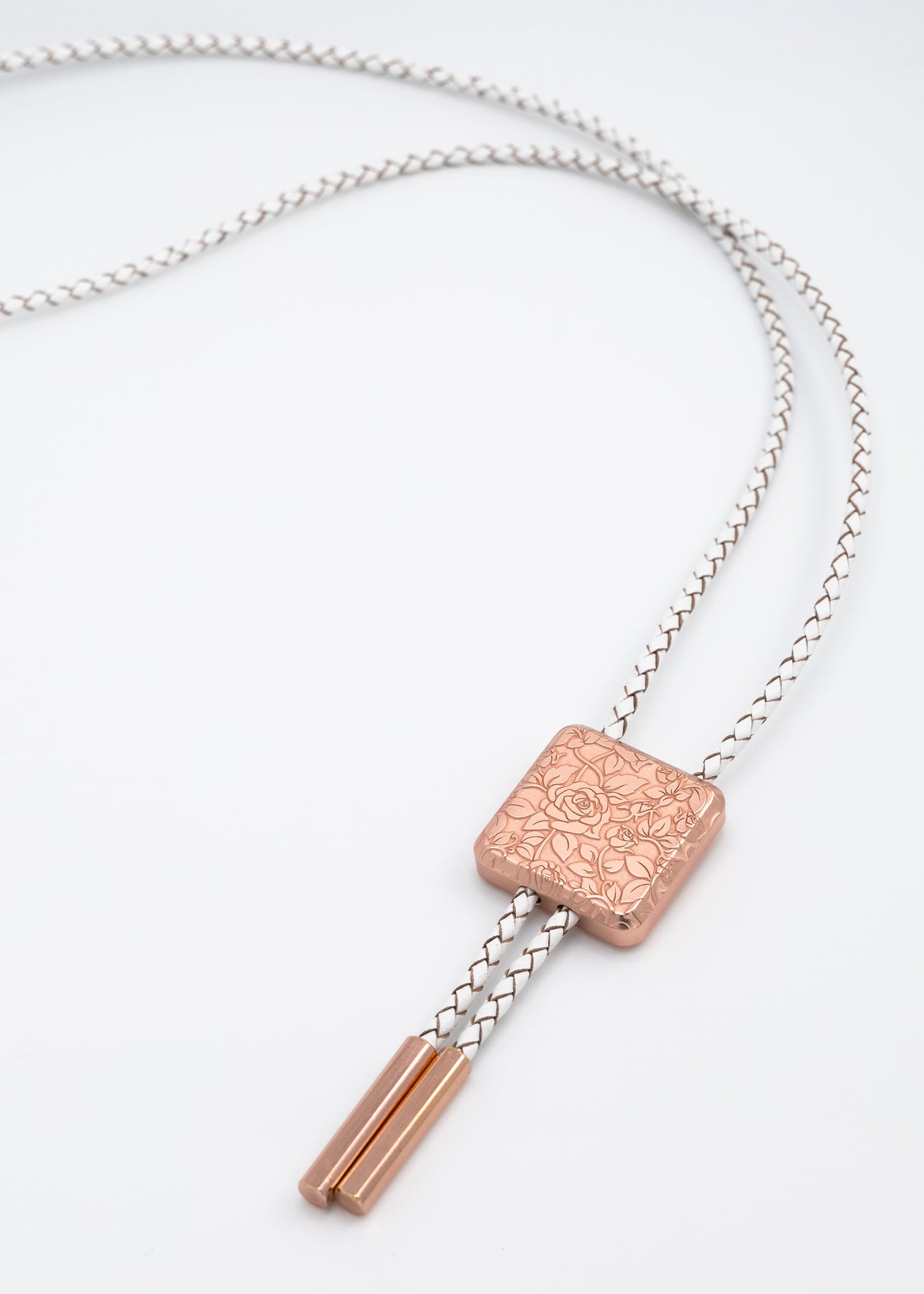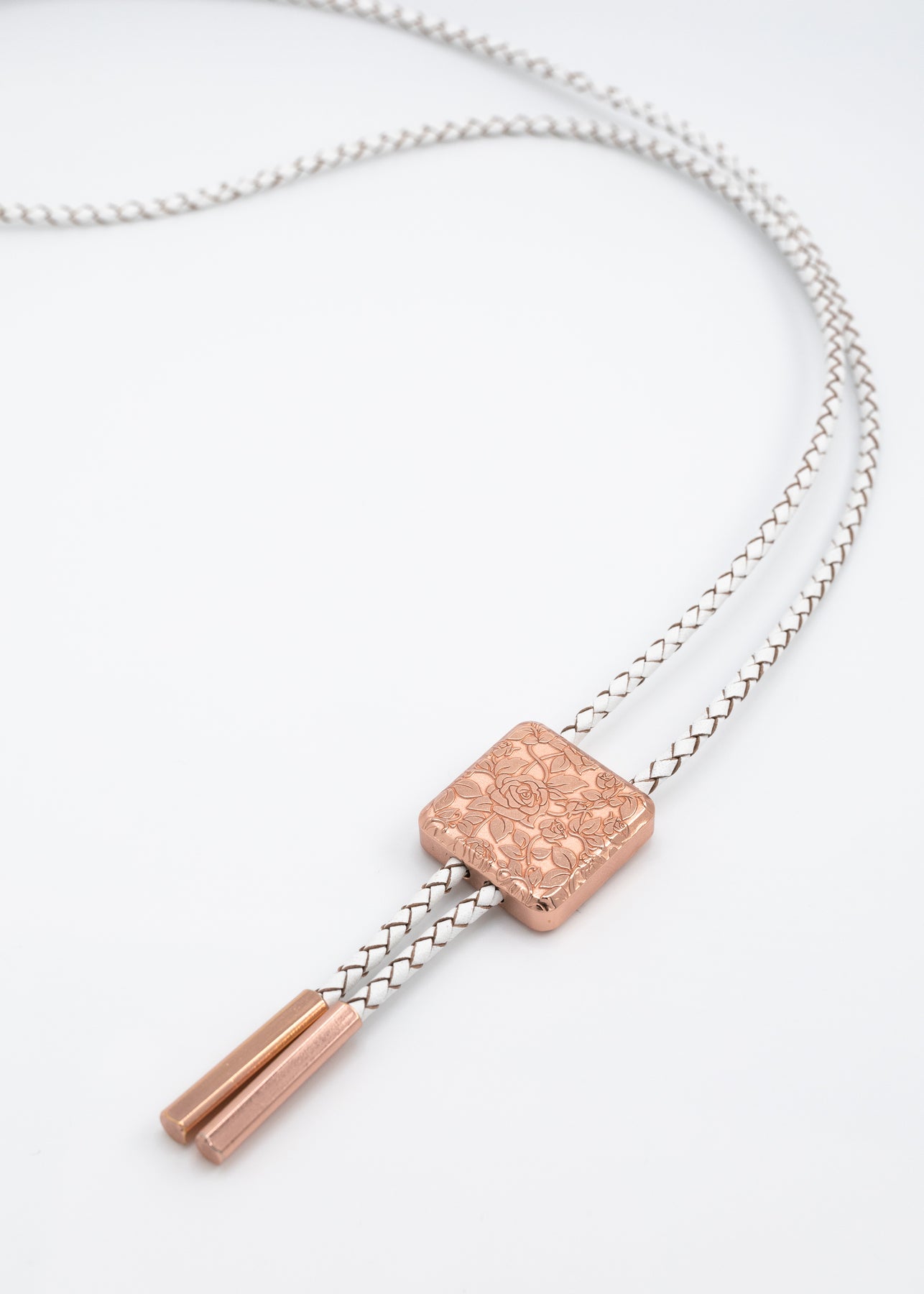 *Patent Pending Design* Simply press the button on the back of the bolo, slide it to the desired position and it securely holds itself in place.
