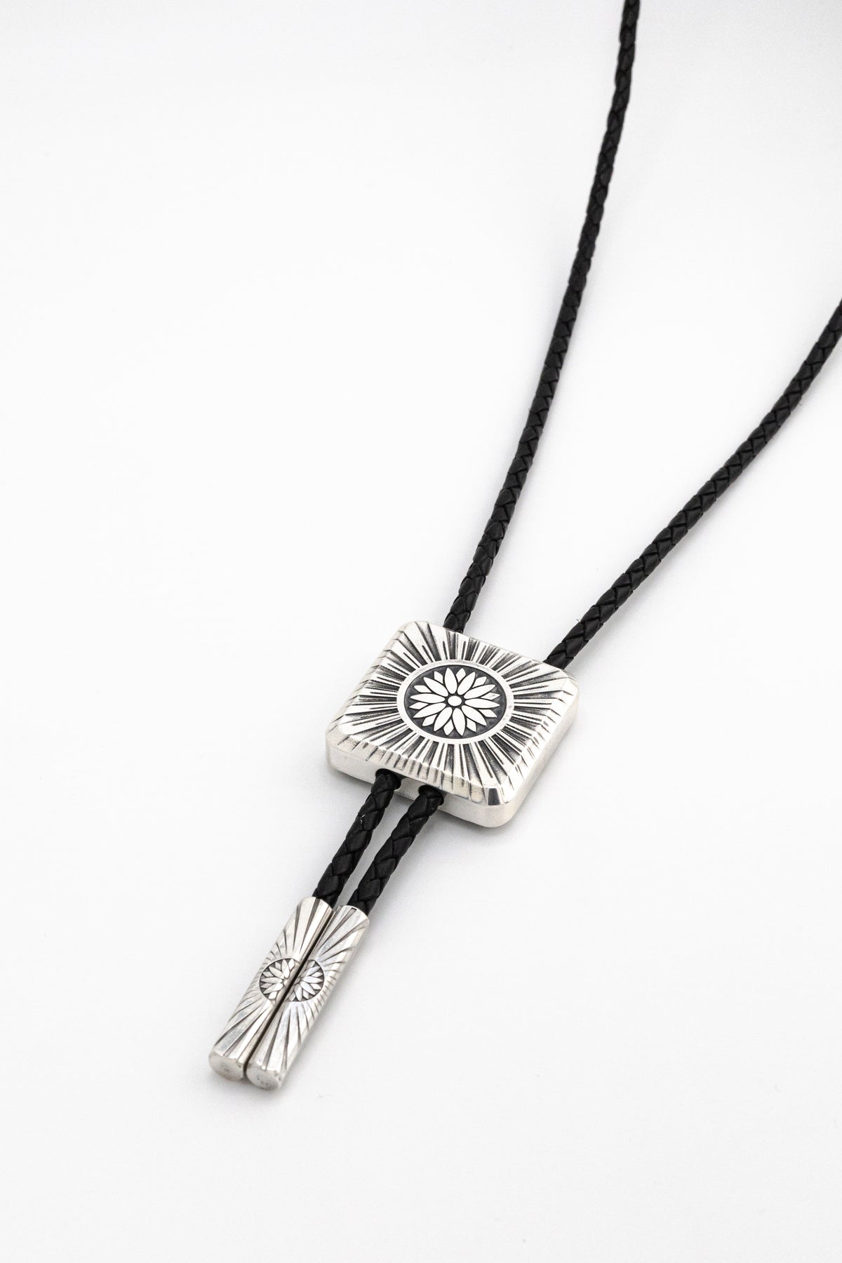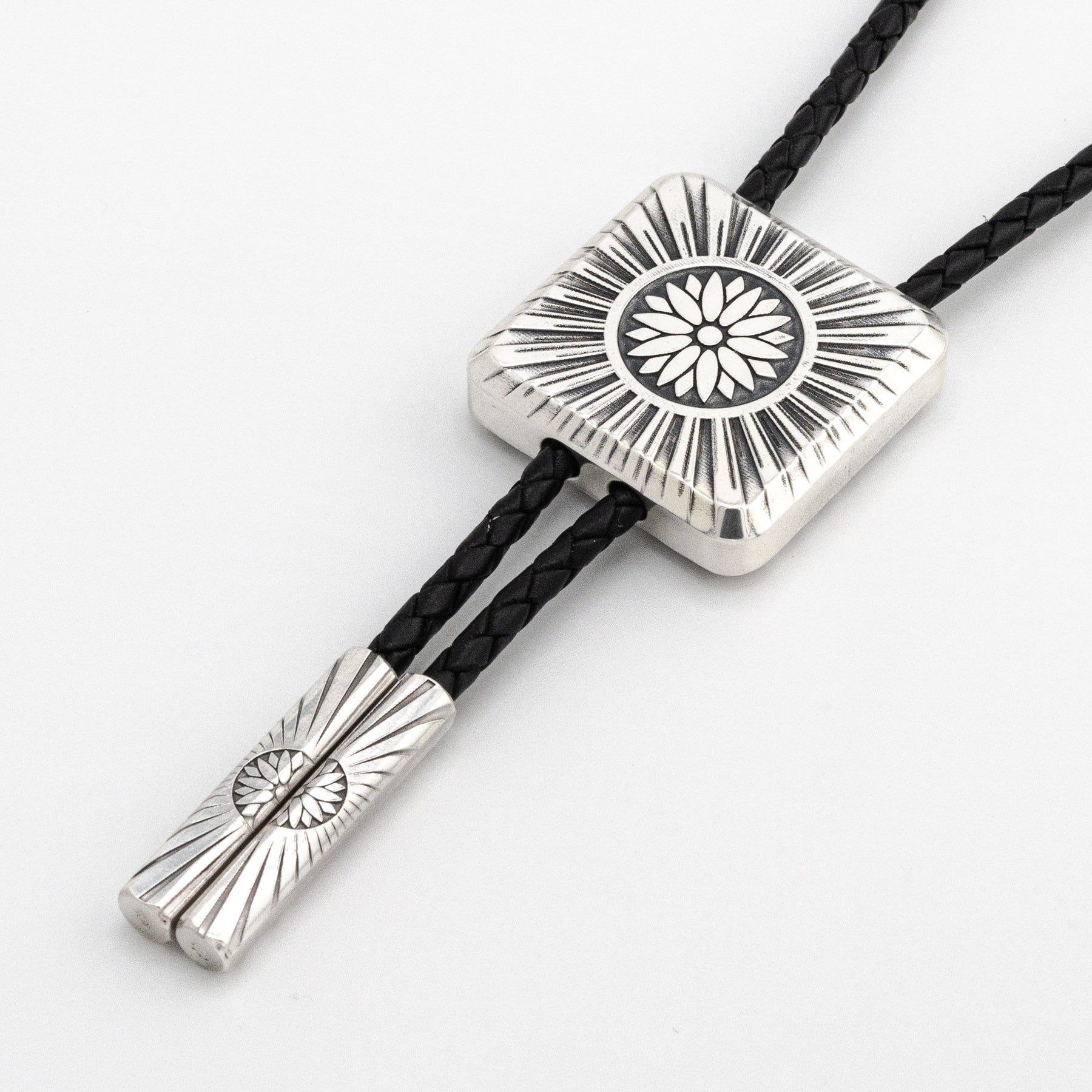 The "Sunflower" bolo tie is the epitome of class. A beautiful silver bolo tie is something that simply always looks good no matter when you wear it.